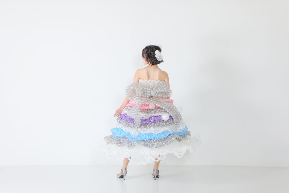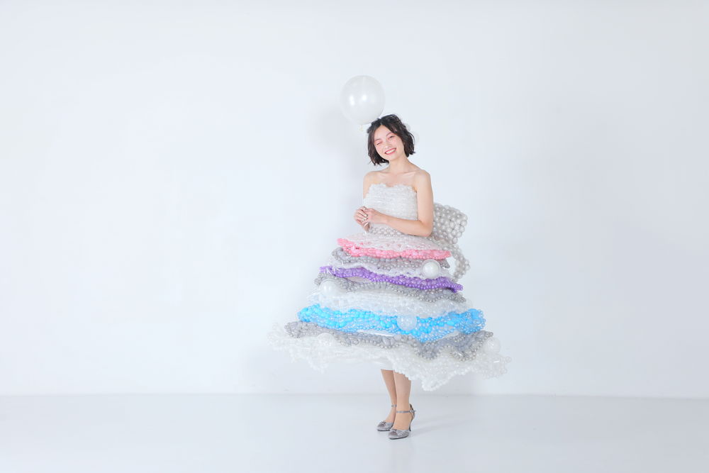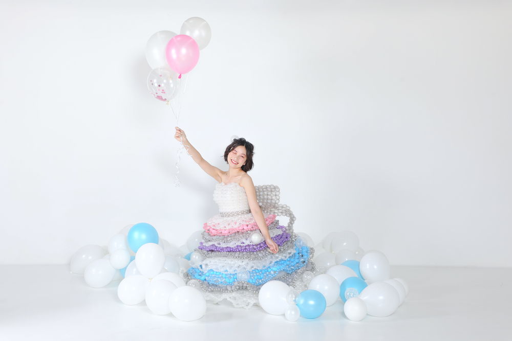 すべてをバルーンのみで作るドレス~既存のドレスにバルーン装飾をしたデザインまで、装飾の程度を選べます。 披露宴での衣装、フォトウェディング、各種イベント、プロフィール写真、SNS 写真(インフルエンサー)など幅広い用途で活用できます。